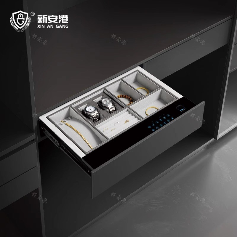家用隐藏式密码抽屉入p衣柜全钢防盗智能指纹密码箱嵌入式保险柜