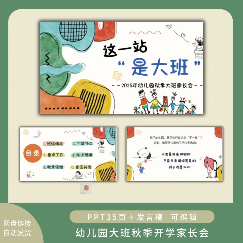 幼儿园大班秋季开学家长会《这一站是大班》ppt+发言稿