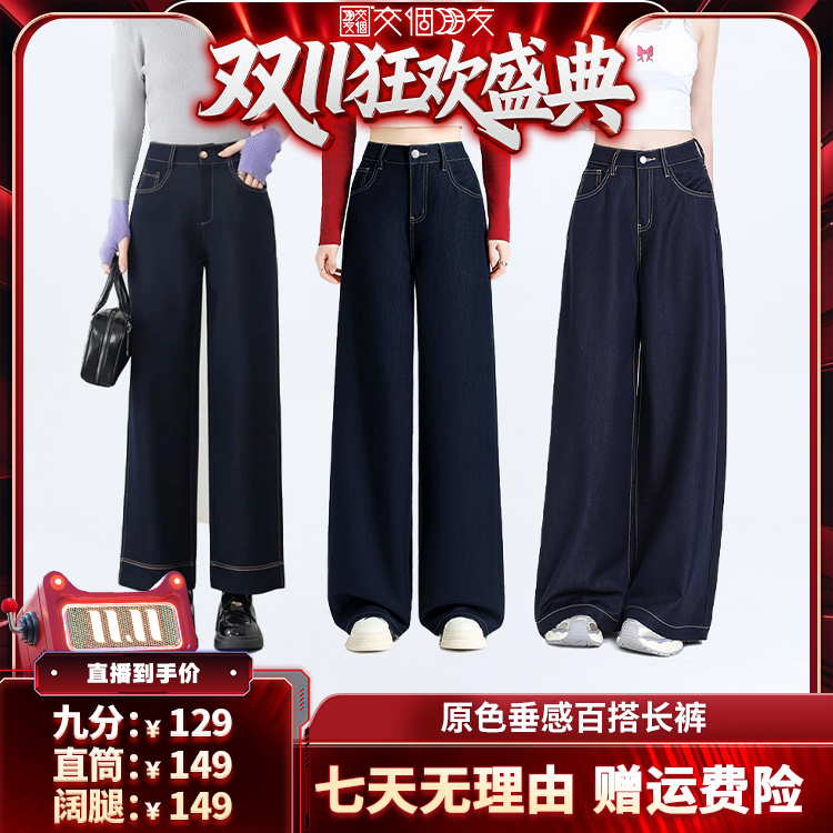 逸阳高腰直筒牛仔裤女显高2025秋新款宽松显瘦拖地弹力窄版阔腿裤