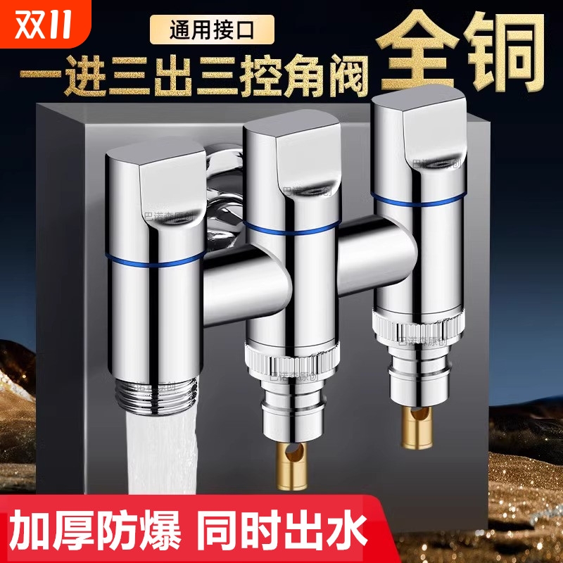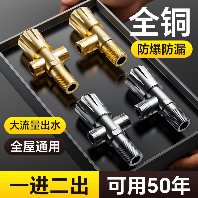 三通角阀全铜一进二出水龙头开关一分二双洗衣机三角阀分水器马桶