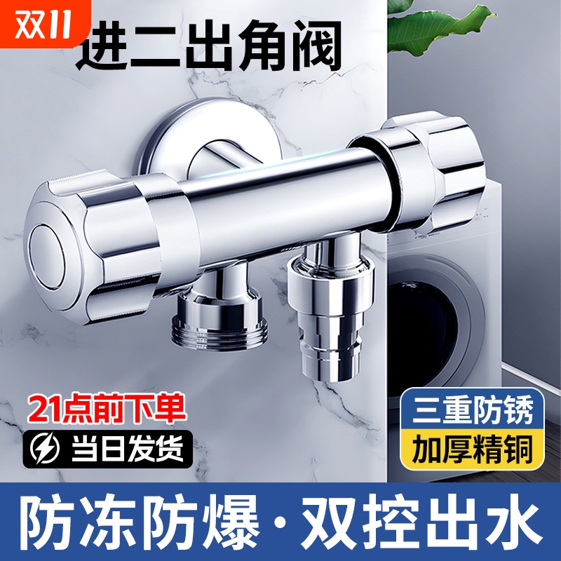 三通角阀 一进二出水龙头开关 一分二洗衣机双控三角阀分水器阀门