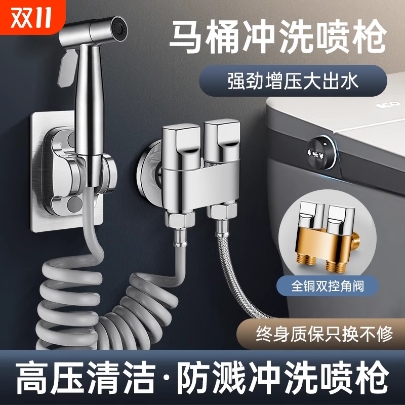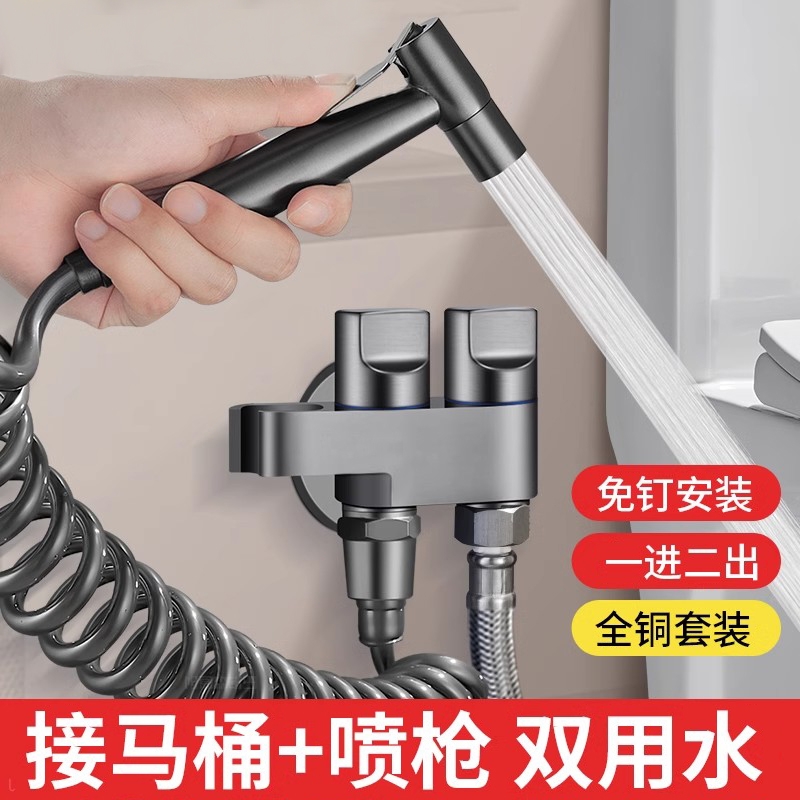 OOKO高档马桶伴侣一进二出双控双出水强力喷枪卫生间角阀套装铜芯