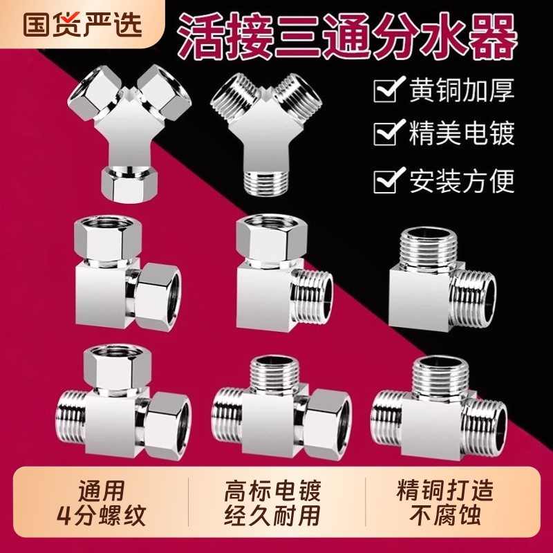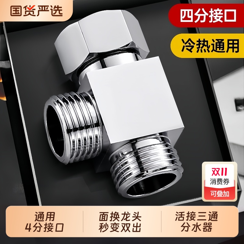 三通分水阀门一进二出角阀分水器水龙头一分二活转接头304不锈钢