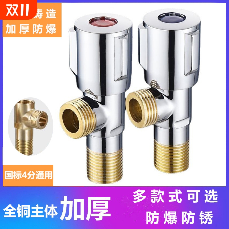 全铜一进二出角阀加厚三角阀通用马桶热水器4分水阀门卫浴