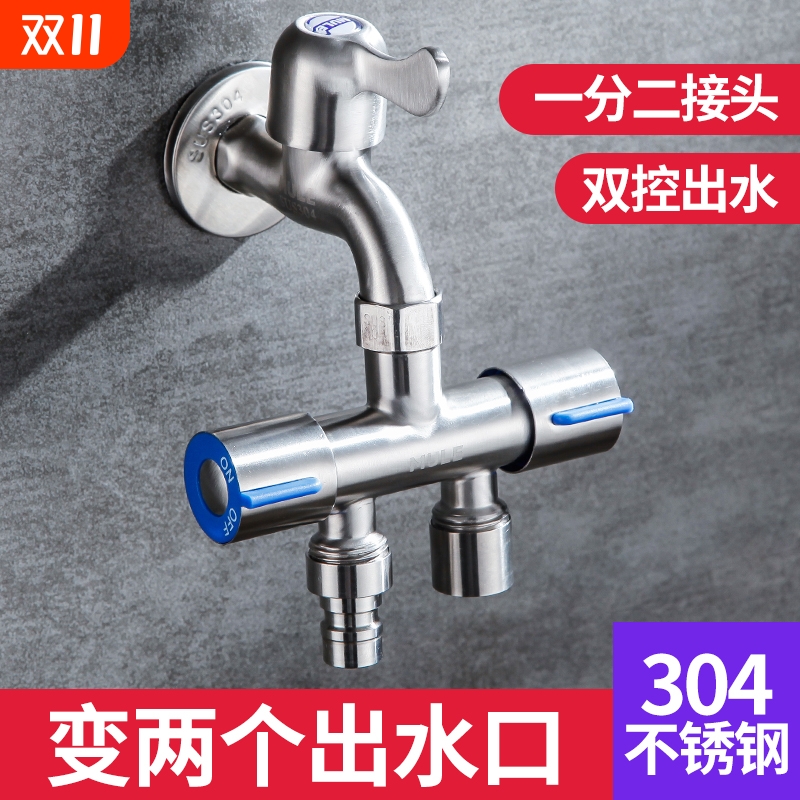 不锈钢分流双控角阀一进二出三通分水阀水龙头一分二分水器带开关