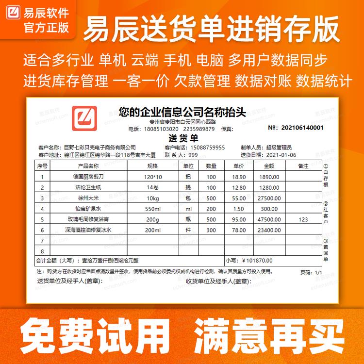 易辰送货单打印系统软件销售清单发货单进销存库存出货管理系统