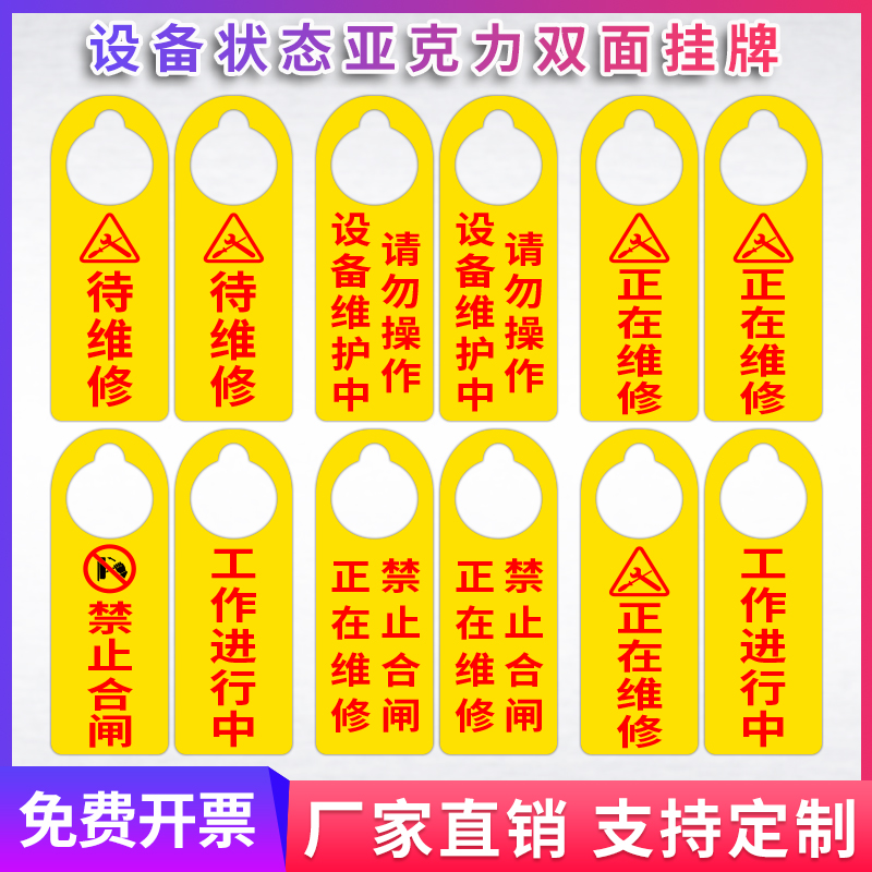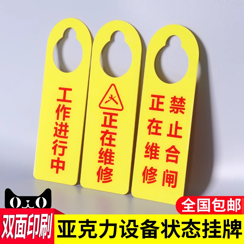 工作进行中正在维修请勿合闸亚克力设备状态挂牌工厂生产车间机器机械