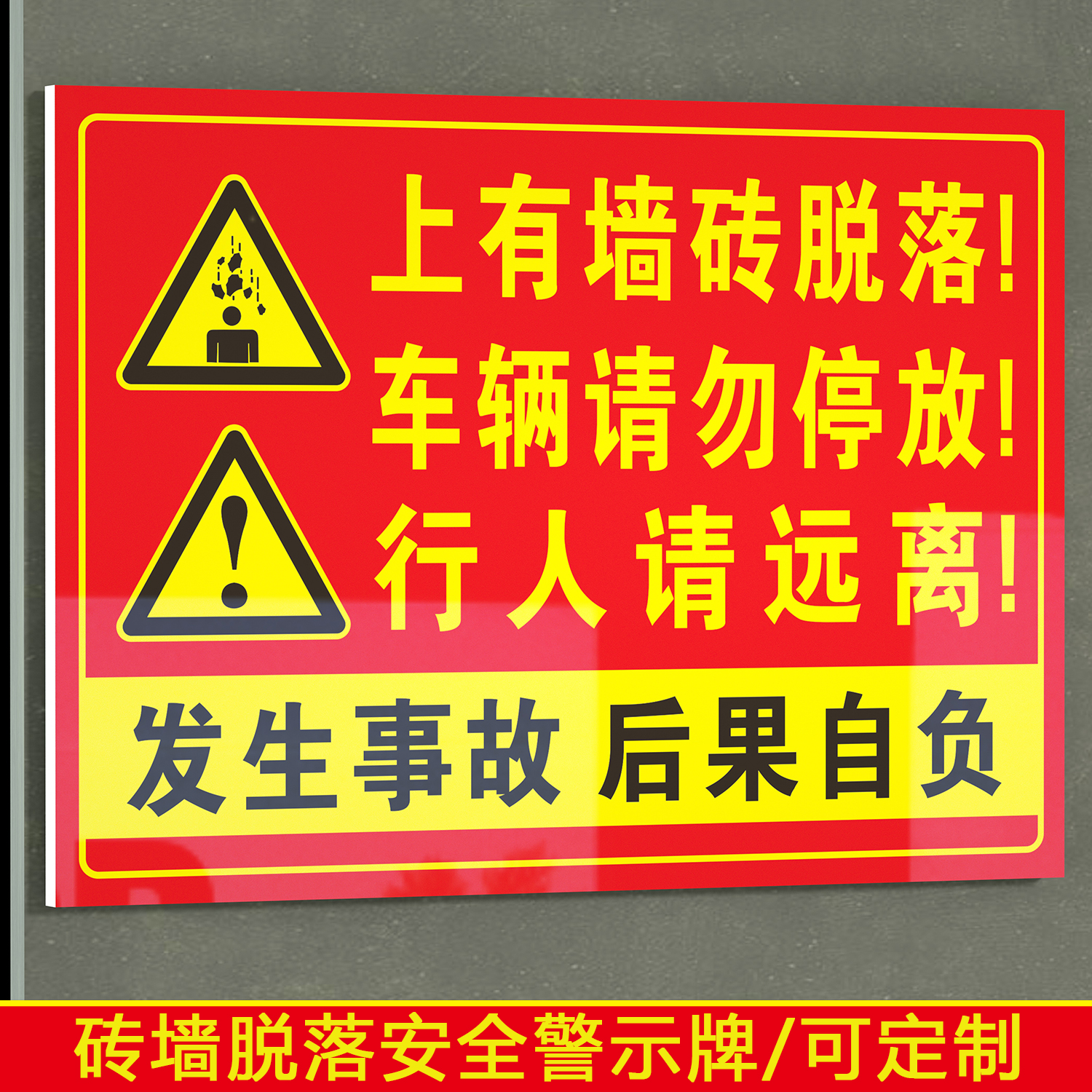 小心瓷砖脱落人车禁止停留车辆请勿停放行人请远离安全警示标识牌