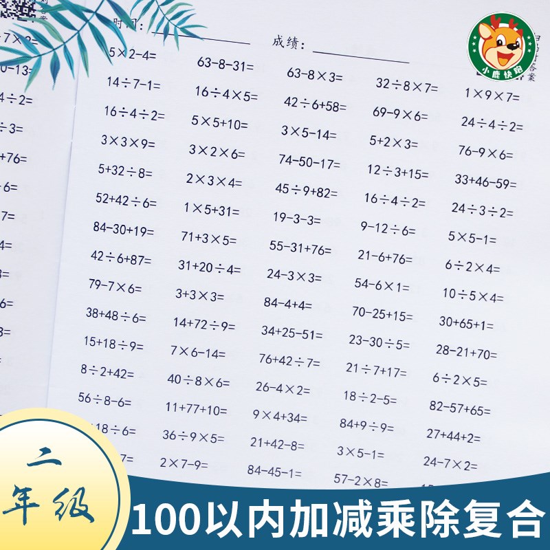 100以内加减乘除混合运算连乘连除计算题小学数学口算天天练习本