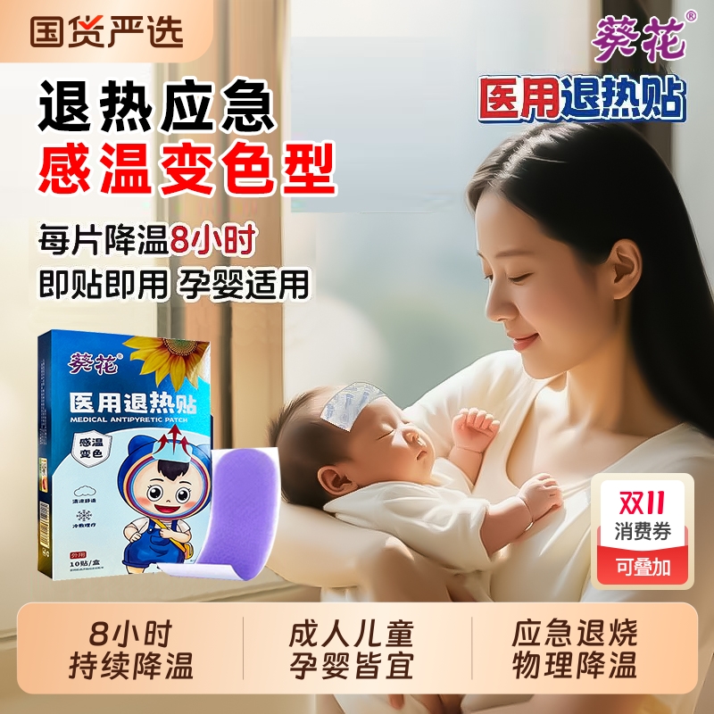 葵花医用退热贴宝宝成人热敷贴物理降温冰凉贴感温变色儿童退烧贴