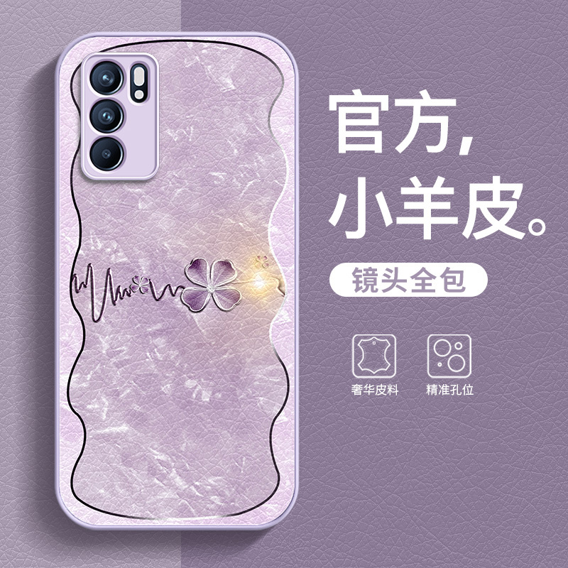 四叶草适当用opporeno6手机壳新款reno6女款全包防摔高