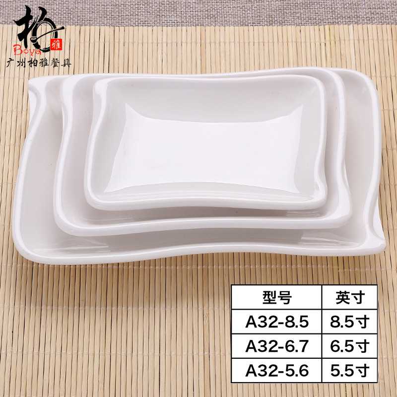 新款直销仿瓷白色肠粉盘密胺塑料长方形碟子菜盘仿瓷火锅烧烤烤肉