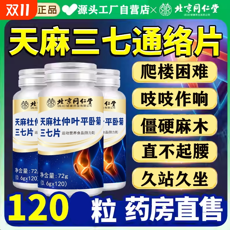 【官方旗舰店】北京同仁堂天麻三七通络片当归杜仲叶平卧菊三七片