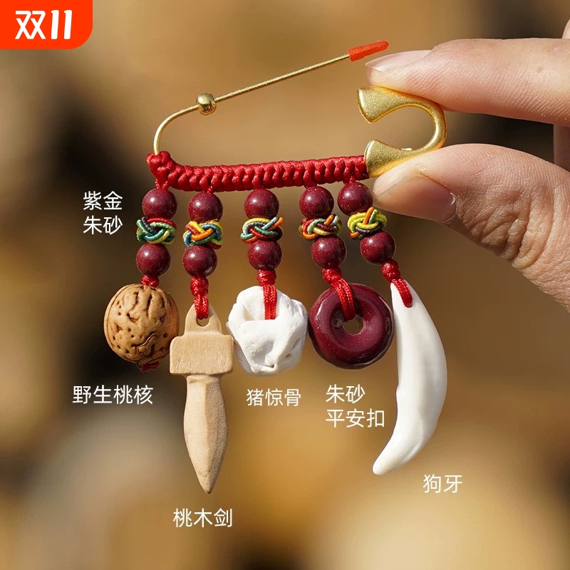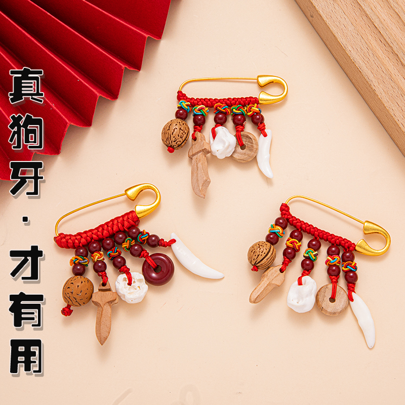 别针婴儿狗牙桃核剑猪骨桃木挂件邪外出身吓惊符辟童宝宝朱砂安全