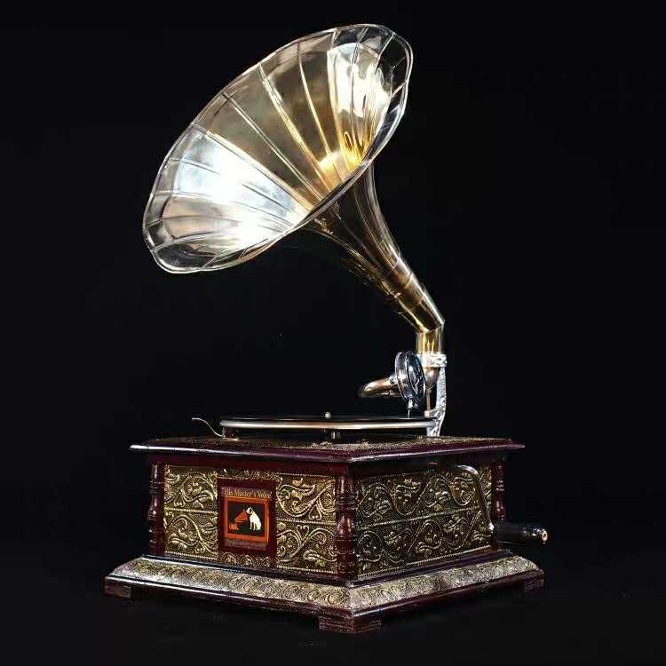 现货库存印度金色大喇叭78转黑胶唱机,欧式仿古留声机;发条动力