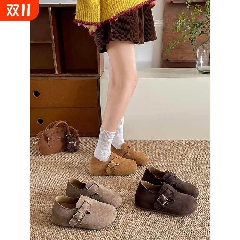 百搭韩系黄色复古厚底全包勃肯鞋女2025新款秋季配裙子内增高单鞋