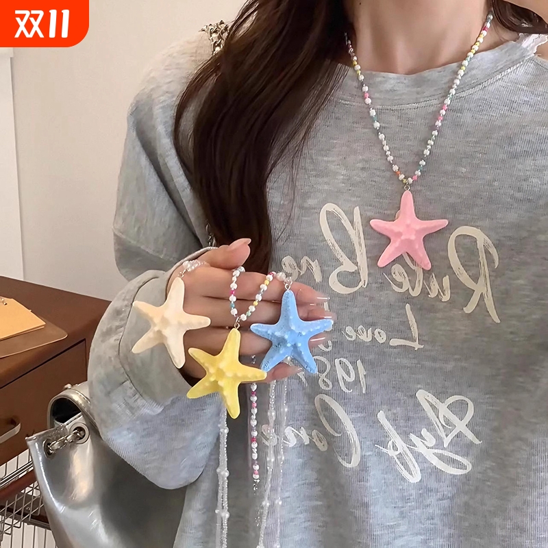 多巴胺长款串珠海星项链女夏天海边海岛度假风夸张黄色锁骨链配饰