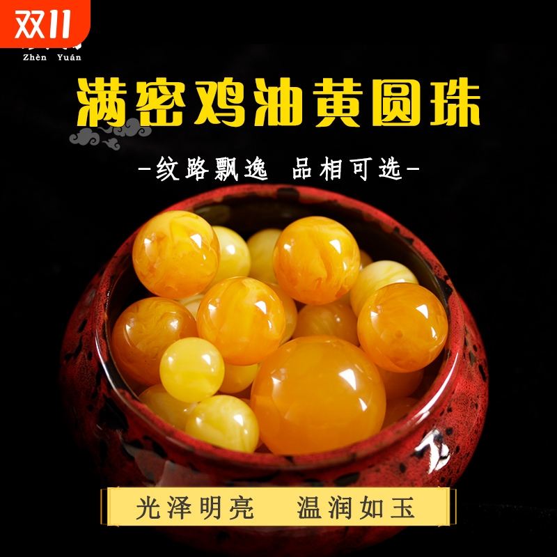鸡油黄白花高油二代琥珀蜜蜡黄天然黄飘圆珠diy散珠文玩配饰佛珠