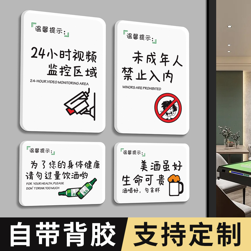 24小时视频监控区域温馨提示牌未成年人禁止入内酗酒喝酒标识贴牌
