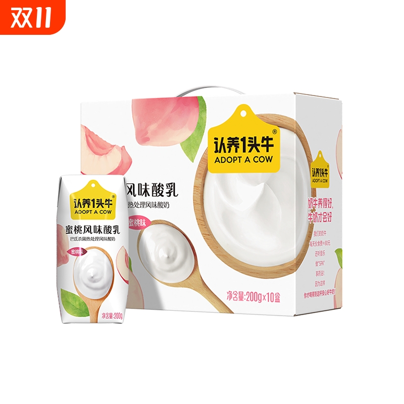 【官方正品】6月产认养一头牛蜜桃风味酸奶200g*10盒学生酸奶