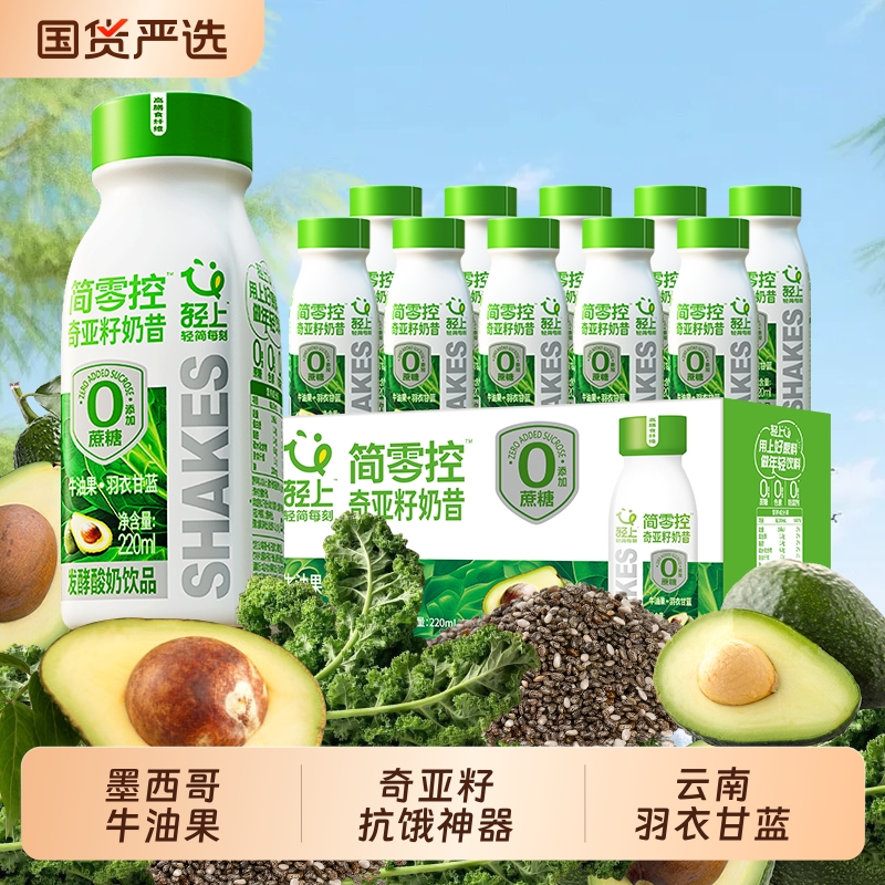 轻上简零控牛油果羽衣甘蓝奇亚籽奶昔饮品酸奶代餐饱腹整箱装T