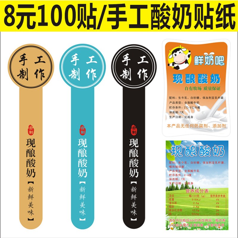 诗束 现酿酸奶手工制作贴纸铜版纸不干胶标签定制彩色LOGO商标不