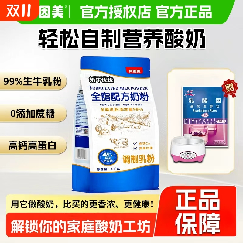 贝因美全家营养奶粉1kg袋装高钙0蔗糖添加家用制作营养酸奶牛奶粉