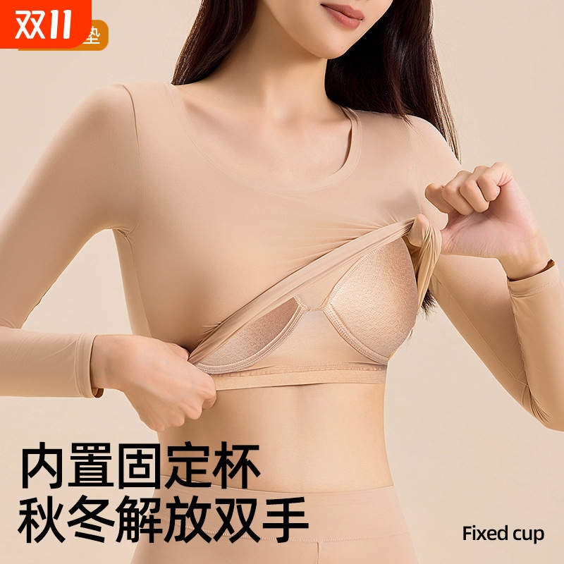 秋冬新款女士玻尿酸升级固定杯美肤衣自带杯垫高弹力养肤肌底套装