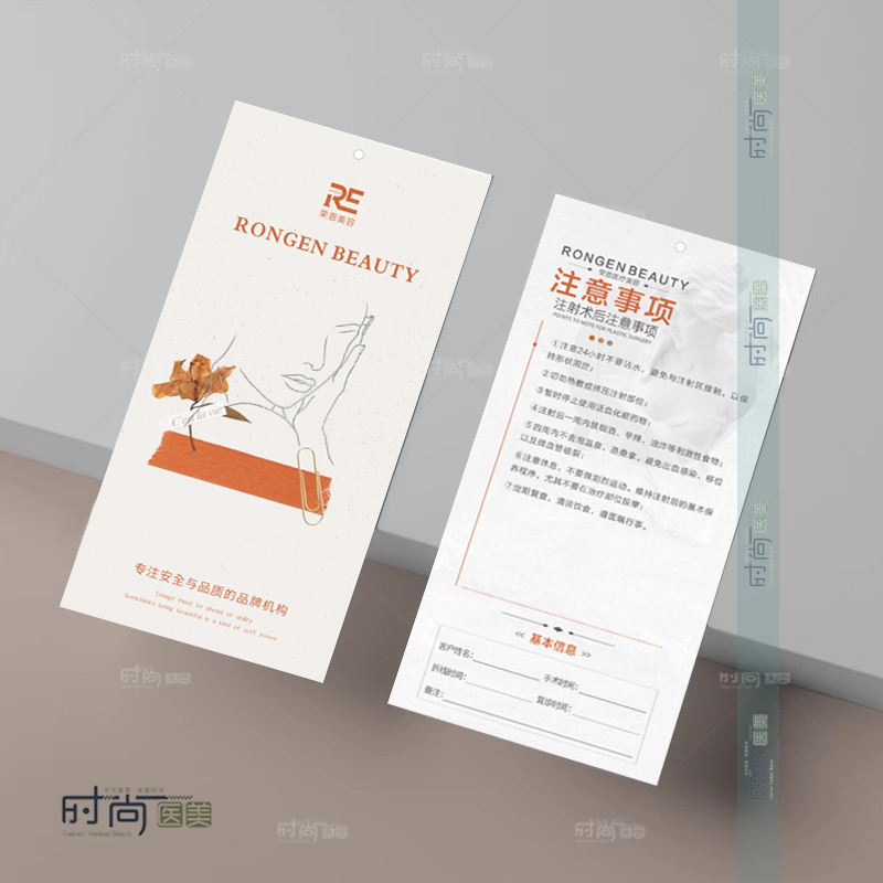 医疗美容整形须知注意事项卡片眼鼻部水光针玻尿酸术后复诊卡定制