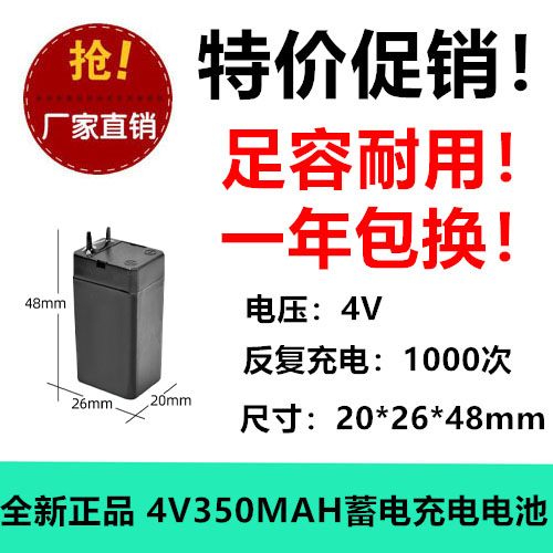 4V350MAH蓄电池4V0.35A电瓶电蚊拍应急灯台灯手电筒电