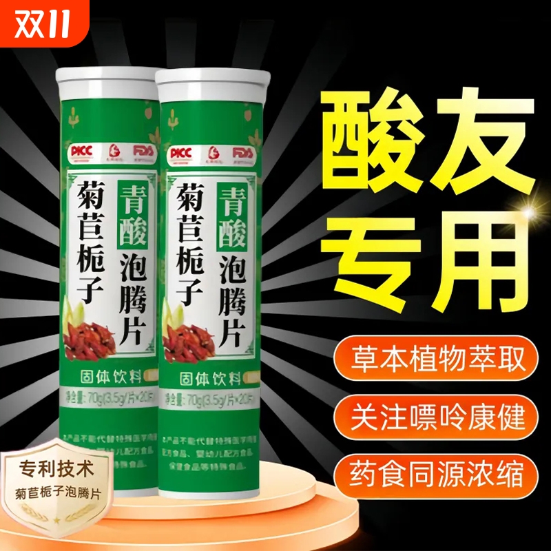 菊苣栀子泡腾片根尿酸茶高利尿柠檬酸盐降茯苓酸友饮排