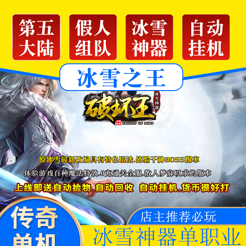 传奇单机版全新冰雪之王神器破坏王盟重新城单职业-自动回收-自动挂