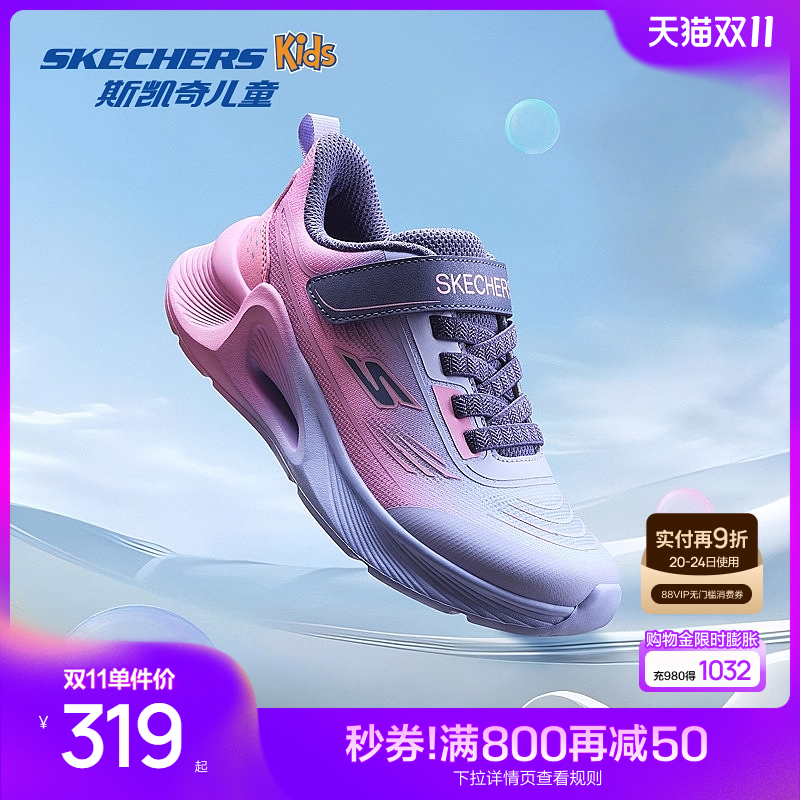 Skechers斯凯奇女童魔术贴运动鞋秋季新款轻量减震潮流跑鞋运