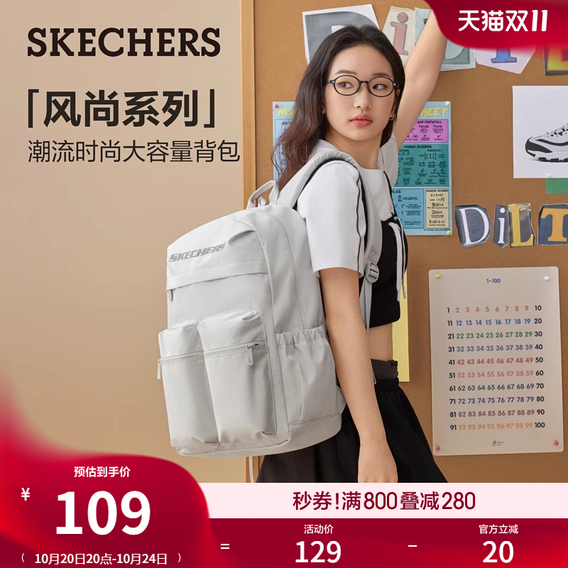 斯凯奇双肩包男女同款大容量学生书包初高中生户外轻便背包通勤包