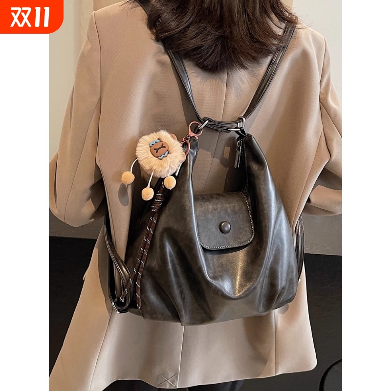 瑶晓鱼复古大包包女2025冬季大容量托特包韩版单肩斜挎包双肩包