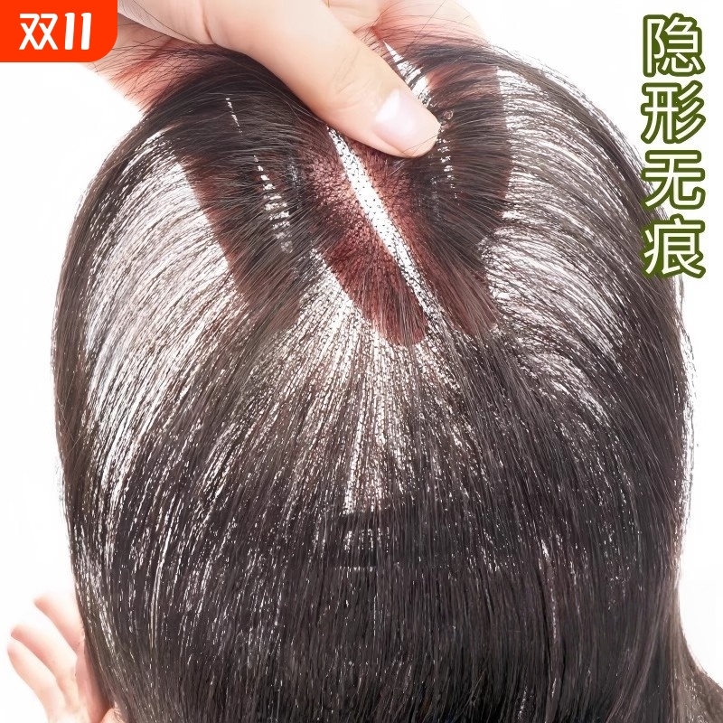 假发片女头顶补发全真发遮白发蓬松颅顶增发量自然无痕头顶补发片