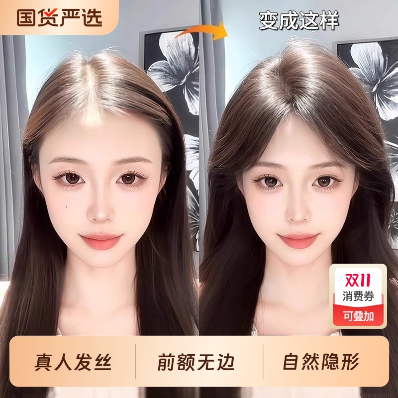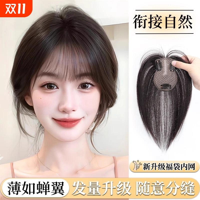 刘海假发片女头顶补发仿真人发高颅顶增发量蓬松遮白发法式假刘海