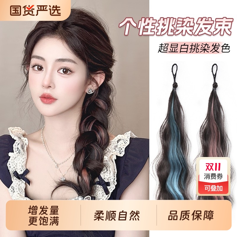 假发辫子女多巴胺挑染彩色发束麻花辫编发神器增加发量长发侧马尾