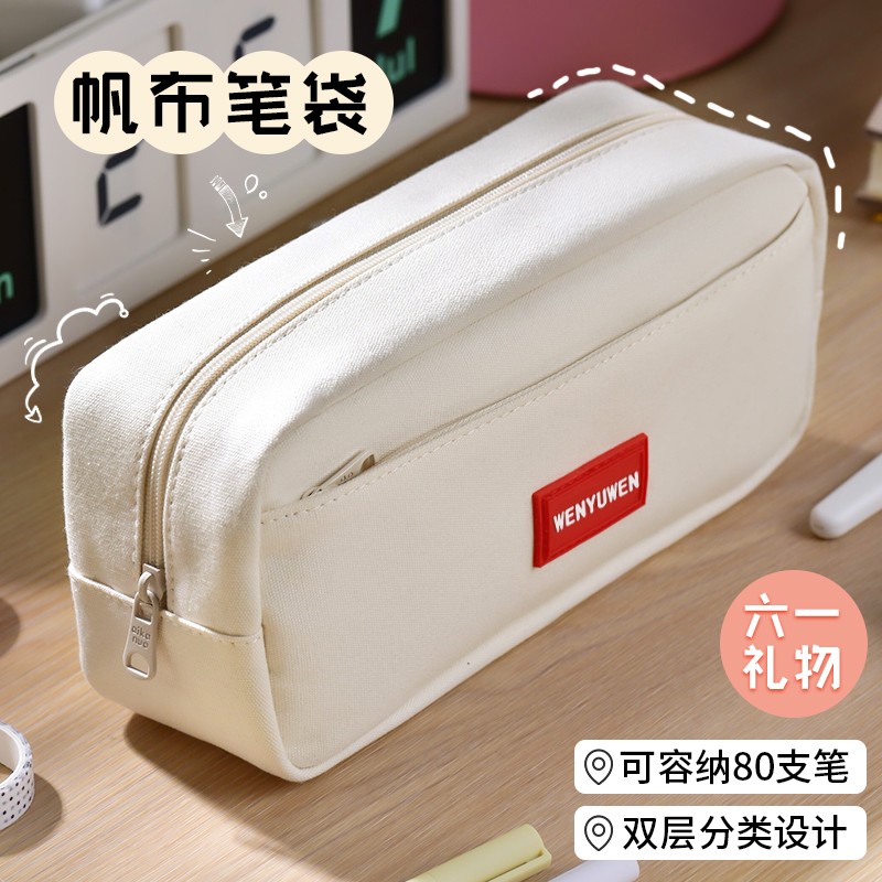 大容量笔袋男女孩子文具袋小初中学生双层收纳笔袋简约纯色铅笔盒