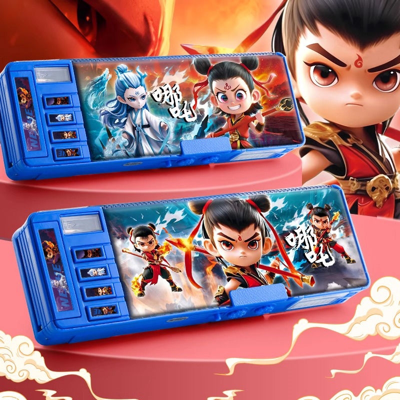 哪吒文具盒多功能笔盒男孩密码锁双层卡通大容量铅笔盒儿童小学生