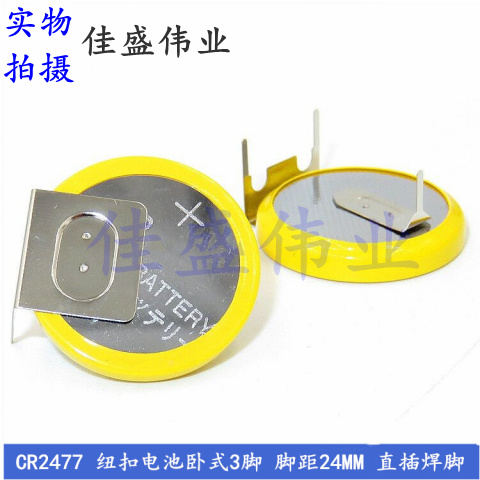 A品足容量 CR2477 3V纽扣电池带插脚 3个脚卧式焊脚 脚