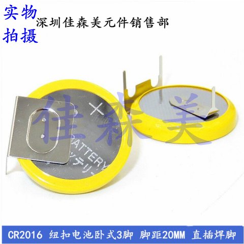 A品足容量 CR2025 3V纽扣电池带插脚 3个脚卧式焊脚 脚