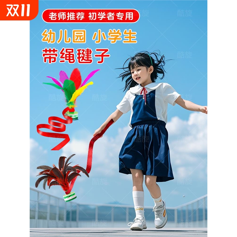 毽子儿童小学生运动专用幼儿园比赛毽球鸡毛键大人耐踢腱带绳毽子