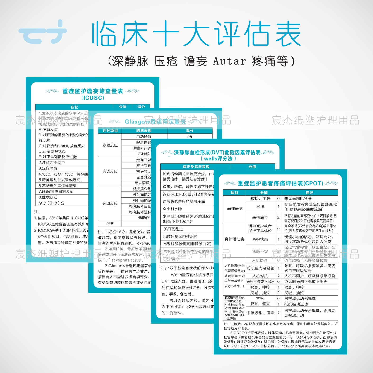 临床危险十项评估表昏迷镇静非计划性拔管疼痛肌力营养-支持定制