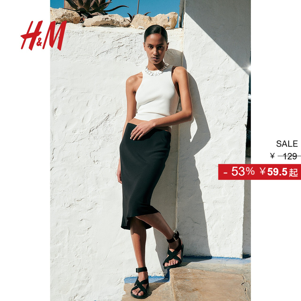 HM女装半身裙秋季时尚优雅及膝锁边中长款半身裙1228903
