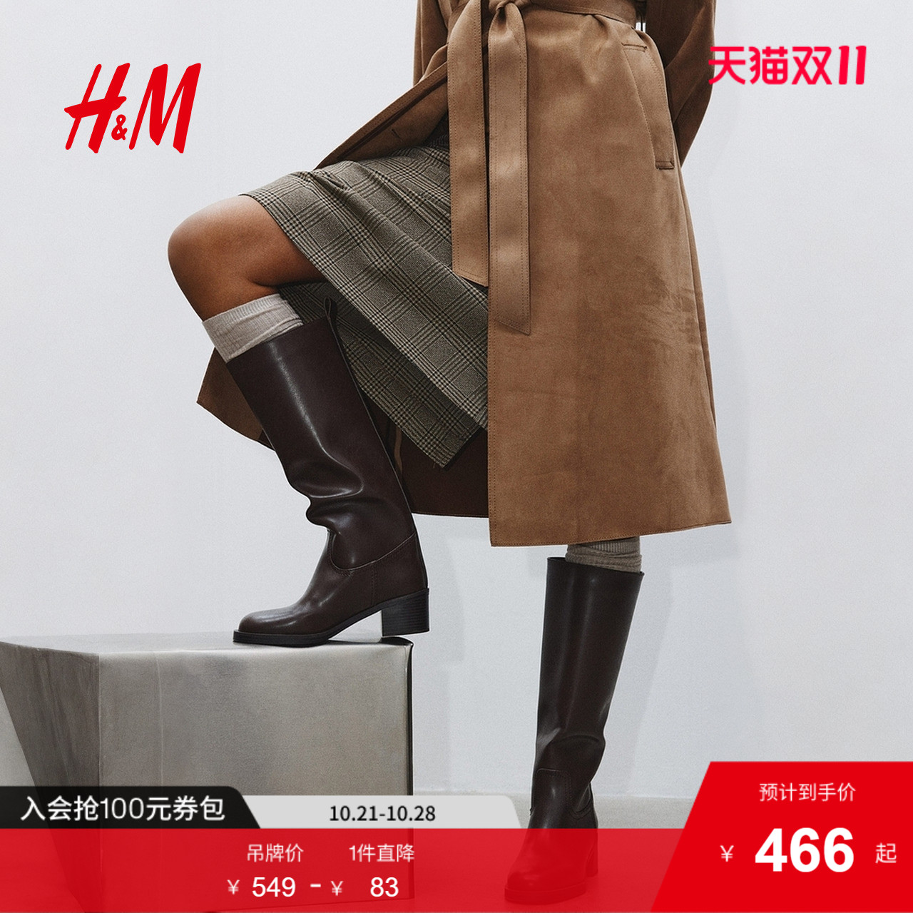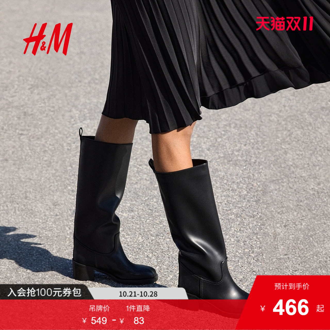 HM女鞋时装靴2025年秋季新款气质精致时尚洋气及膝长靴1291