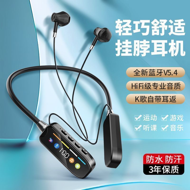 25新款无线蓝牙耳机K歌耳返运动挂脖式长续航可插卡全镜数显男女