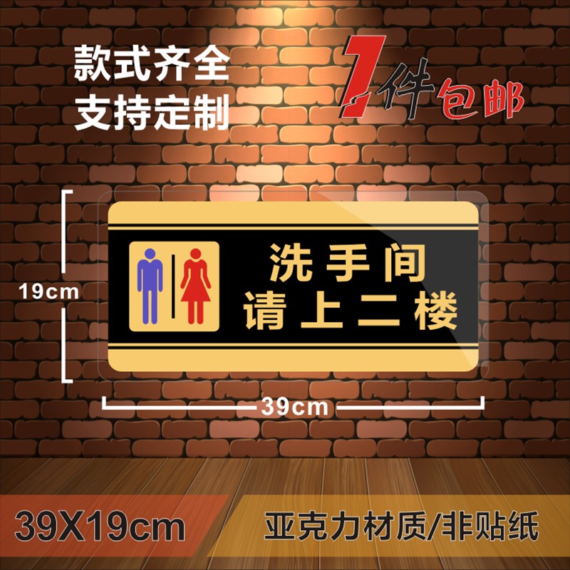亚克力男女卫生间洗手间门贴牌请上二楼厕所标志提示标识牌墙贴