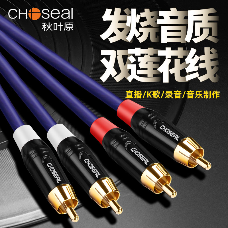 双莲花头音频线2rca二对二红白梅花信号线CD低音炮音箱音响连接