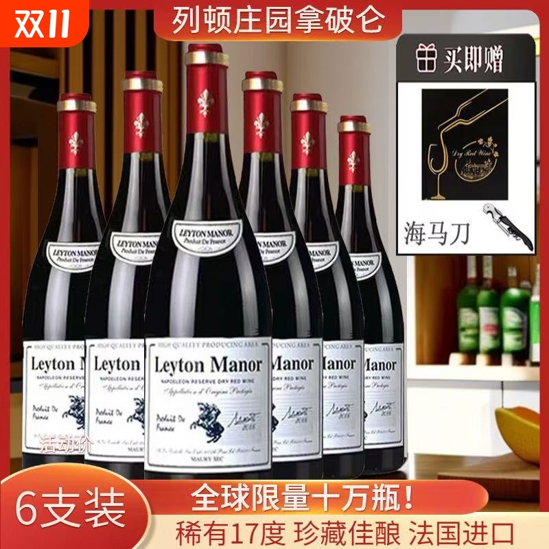 法国原装正品进口限量款17度拿破仑列顿庄园干红葡萄酒750ml*